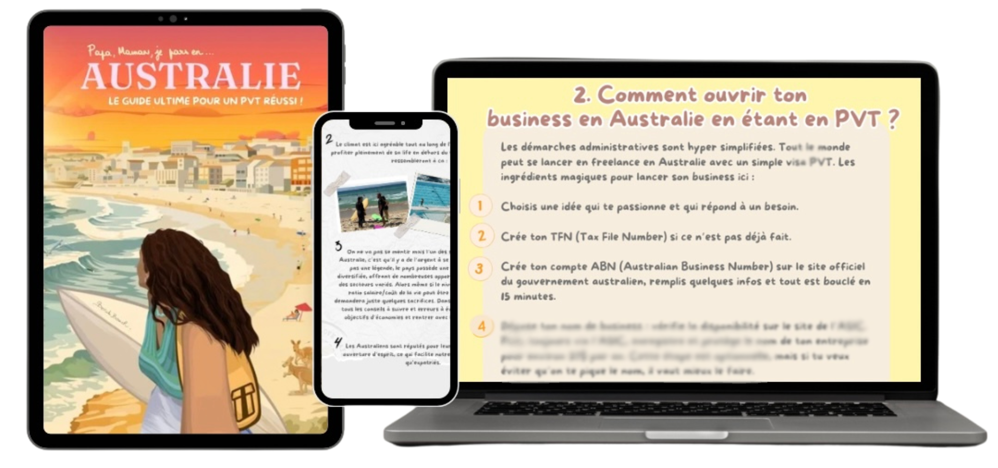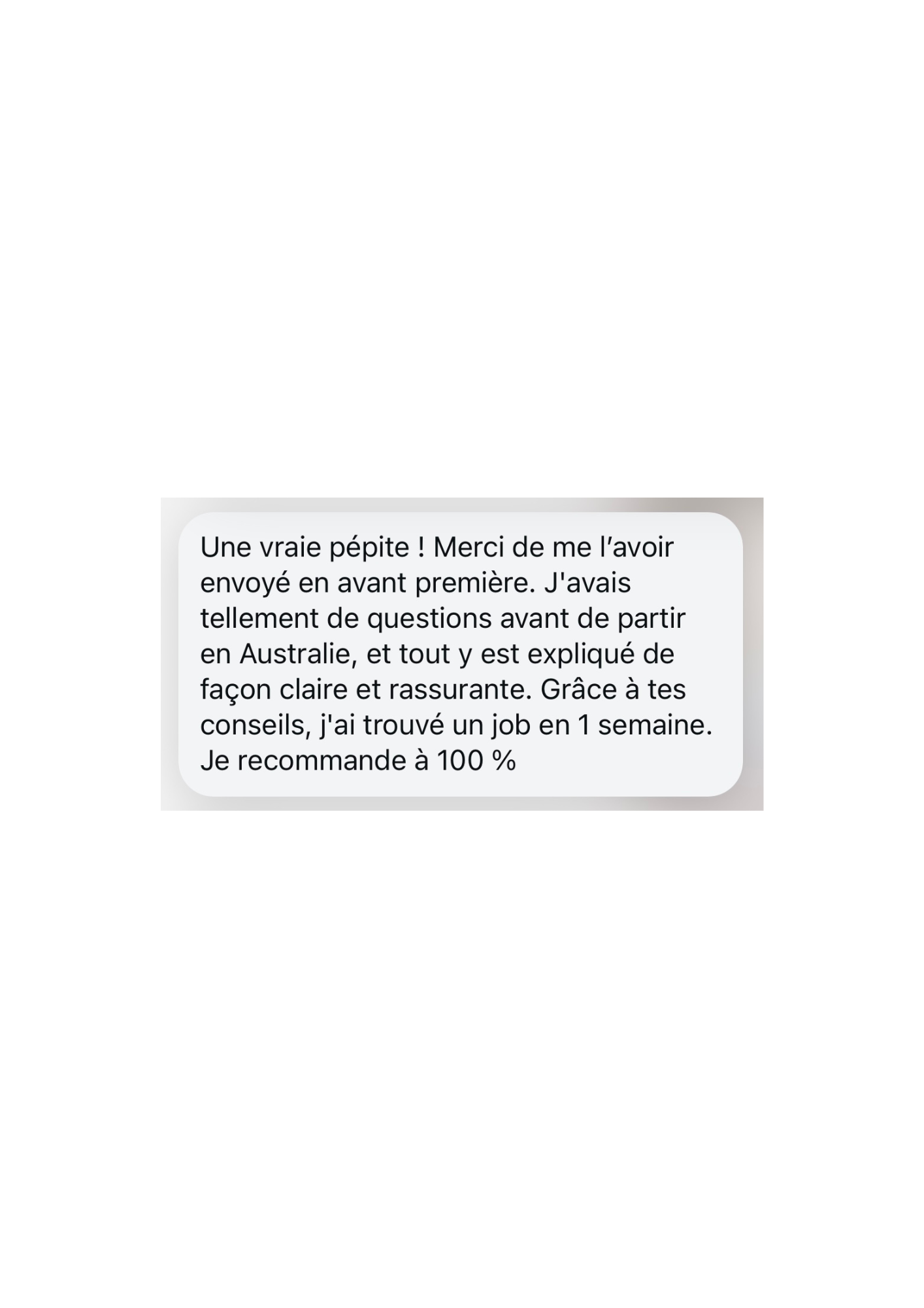 Après plus de 2 ans en Australie, j’ai réuni dans ces 200 pages TOUS mes secrets pour réussir ton aventure en Working Holiday Visa.